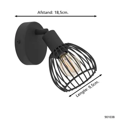 Eglo Luce Da Parete Sonni Acciaio Nero | IP20 - Adatto per 1x E14