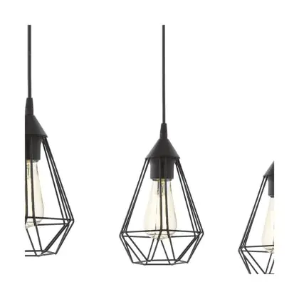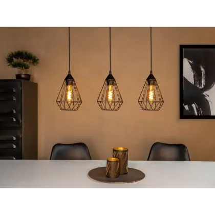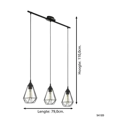 Eglo Luce Pendente Tarbes Acciaio Nero | IP20 - Adatto per 3x E27