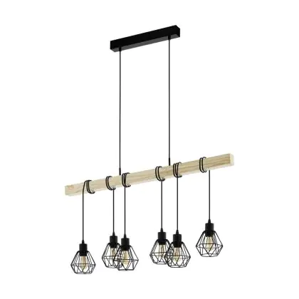 Eglo Luce Pendente Townshend 5 Acciaio Legna Nero | IP20 - Adatto per 6x E27