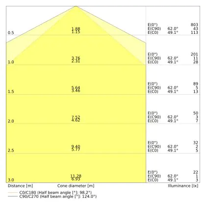 ![]() Il codice colore è una combinazione di resa cromatica (CRI) e colore della luce (Kelvin). La prima cifra indica la resa cromatica (1 = resa del colore molto bassa, 9 = massima resa del colore), mentre la seconda e la terza si riferiscono al colore della luce. Esempio: il codice colore 830 indica una buona resa cromatica (8) e luce bianca calda (3000K). |