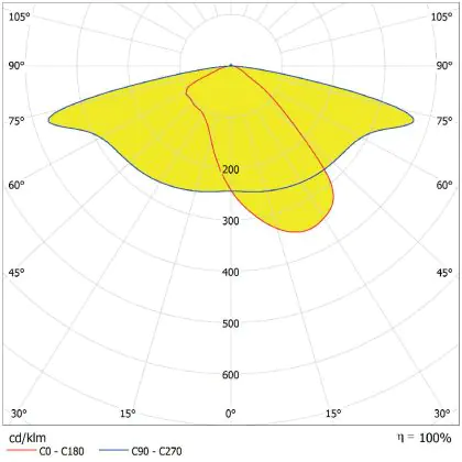 L'alloggiamento impermeabile di questa sorgente luminosa non è l'unica ragione per cui è perfetta per l'uso all'aperto. Infatti bisogna considerare anche la distribuzione della luce di questa lampada stradale, che ha apertura del fascio luminoso di 160x58° ed emette luce di colore 3000K - Luce Calda.