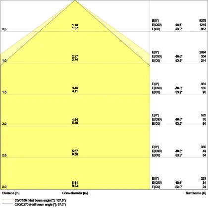 L'apertura del fascio luminoso indica l'angolo del fascio di luce proveniente da una lampada o lampadina. Si misura in gradi (D) e più piccolo è l'angolo, più piccola è l'apertura del fascio di luce.