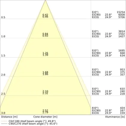 L'apertura del fascio luminoso indica l'angolo del fascio di luce proveniente da una lampada o lampadina. Si misura in gradi (D) e più piccolo è l'angolo, più piccola è l'apertura del fascio di luce.