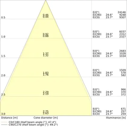 Angolo del Fascio luminoso (gradi) | 18, 50 |