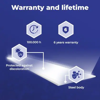 Questo pannello LED ha un ciclo di vita di 100000 ore, che vuol dire che funzionerà in modo ottimale per diversi anni. Questo ti permetterà di risparmiare sui costi di manutenzione e sostituzione! Inoltre, questo pannello LED è protetto da una garanzia di 5 anni. Infine, l'illuminazione LED permette di ridurre le emissioni di CO2 e, non contenendo sostanze tossiche, i LED possono essere riciclati.