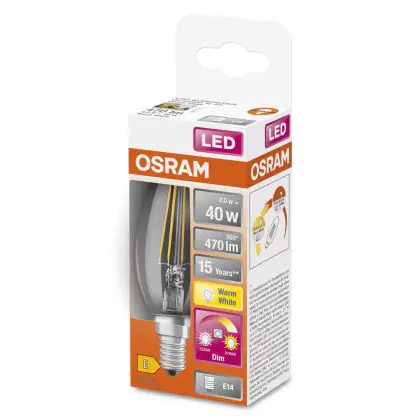 La lampada Osram Superstar Classic LED E14 Candela Filamento Chiara 4W 470lm - 822-827 Dim To Warm | Dimmerabile - Sostitutiva 40W è il sostituto perfetto per le tue vecchie lampade 40W con attacco a vite piccolo E14 grazie alla sua tecnologia LED. Passare a LED ti offrirà molti vantaggi!